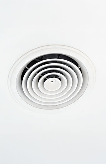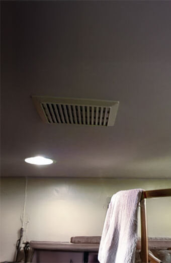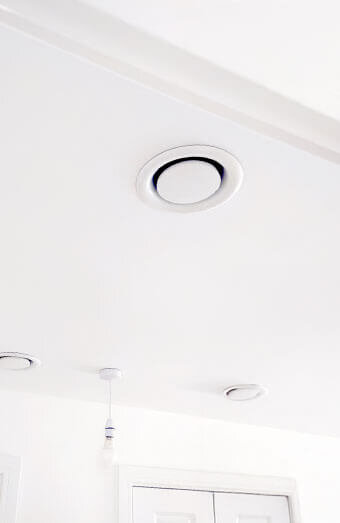 Standard ceiling exhaust fan installation with proper ducting to external vents, ensuring effective removal of stale air and moisture from internal spaces.